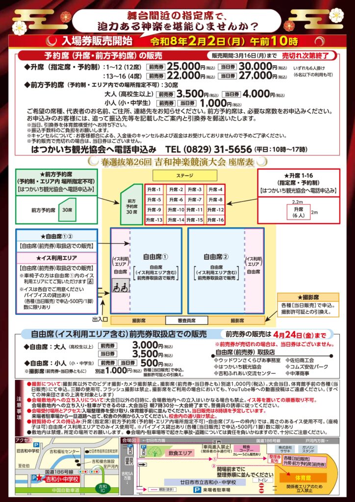 2026年4月25日(土)、廿日市市立吉和小・中学校体育館において、春選抜第26回吉和神楽競演大会が開催されます。