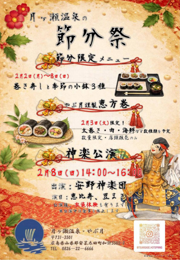 2026年2月8日(日)、安芸太田町加計にある月ヶ瀬温泉にて、節分イベントをが開催されます。